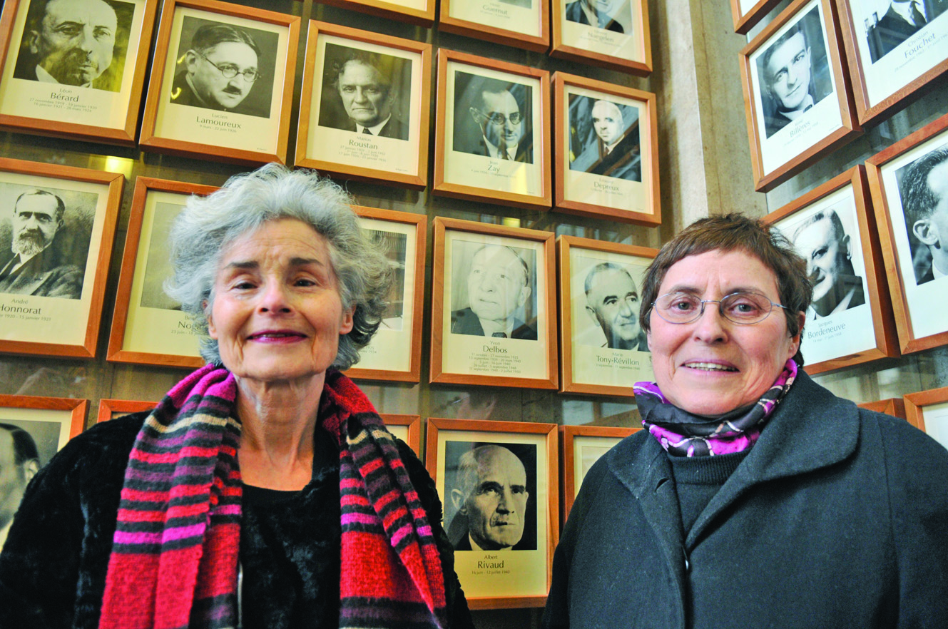 Après avoir contacté le ministère de l’Éducation nationale, nous avons eu, le photographe Michel Wasielewski et nous-même, l’autorisation de les photographier dans l’escalier qui mène au bureau du ministre. Sur le mur sont accrochés les portraits des titulaires de ce prestigieux portefeuille. Michel Wasielewski les a photographiées sous le portrait de leur père, le 6 mars 2009.