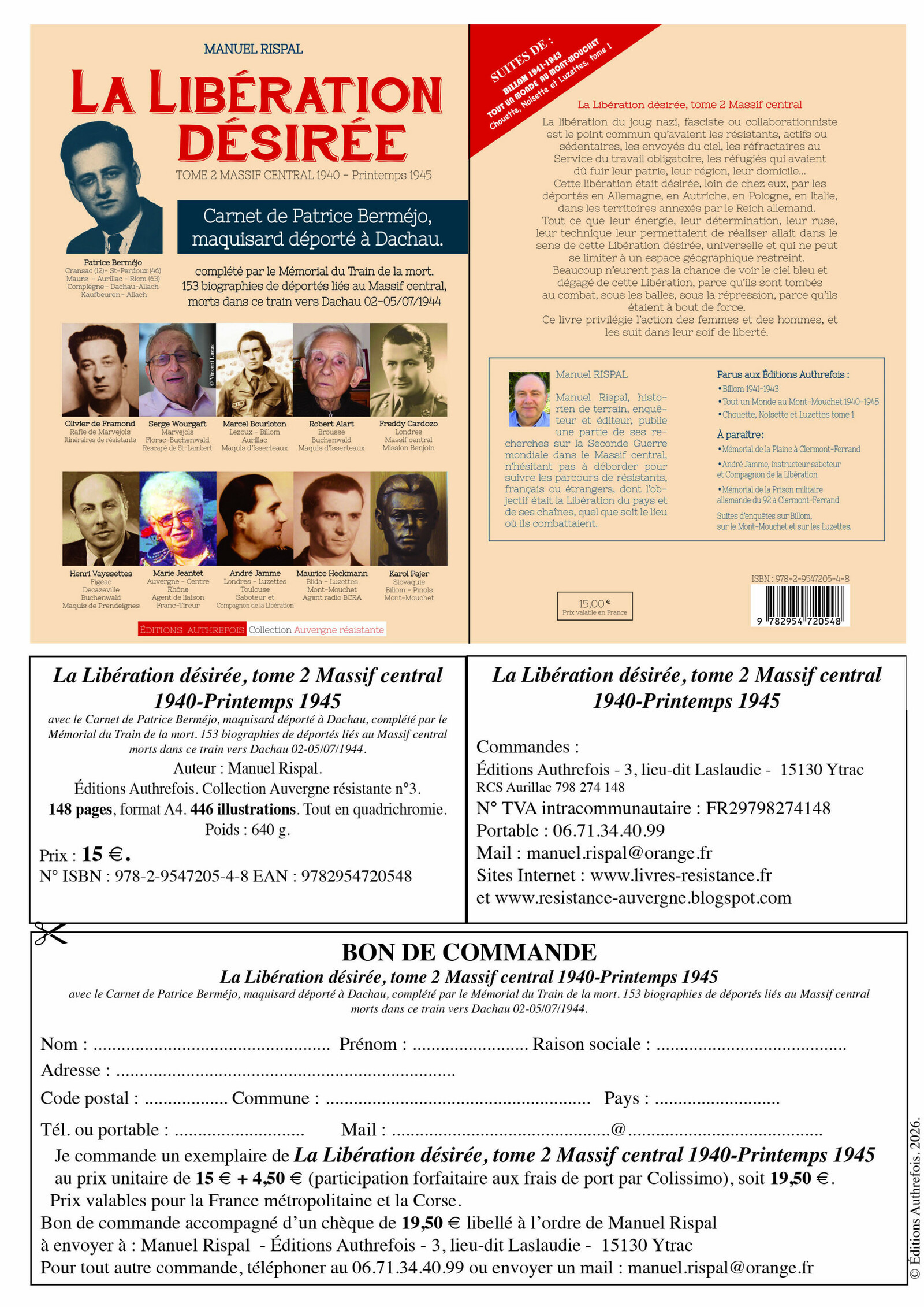 Afin de faciliter les recherches des noms cités dans le livre La Libération désirée tome 2 Massif central, paru en avril 2016 aux Éditions Authrefois, nous en publions la liste.